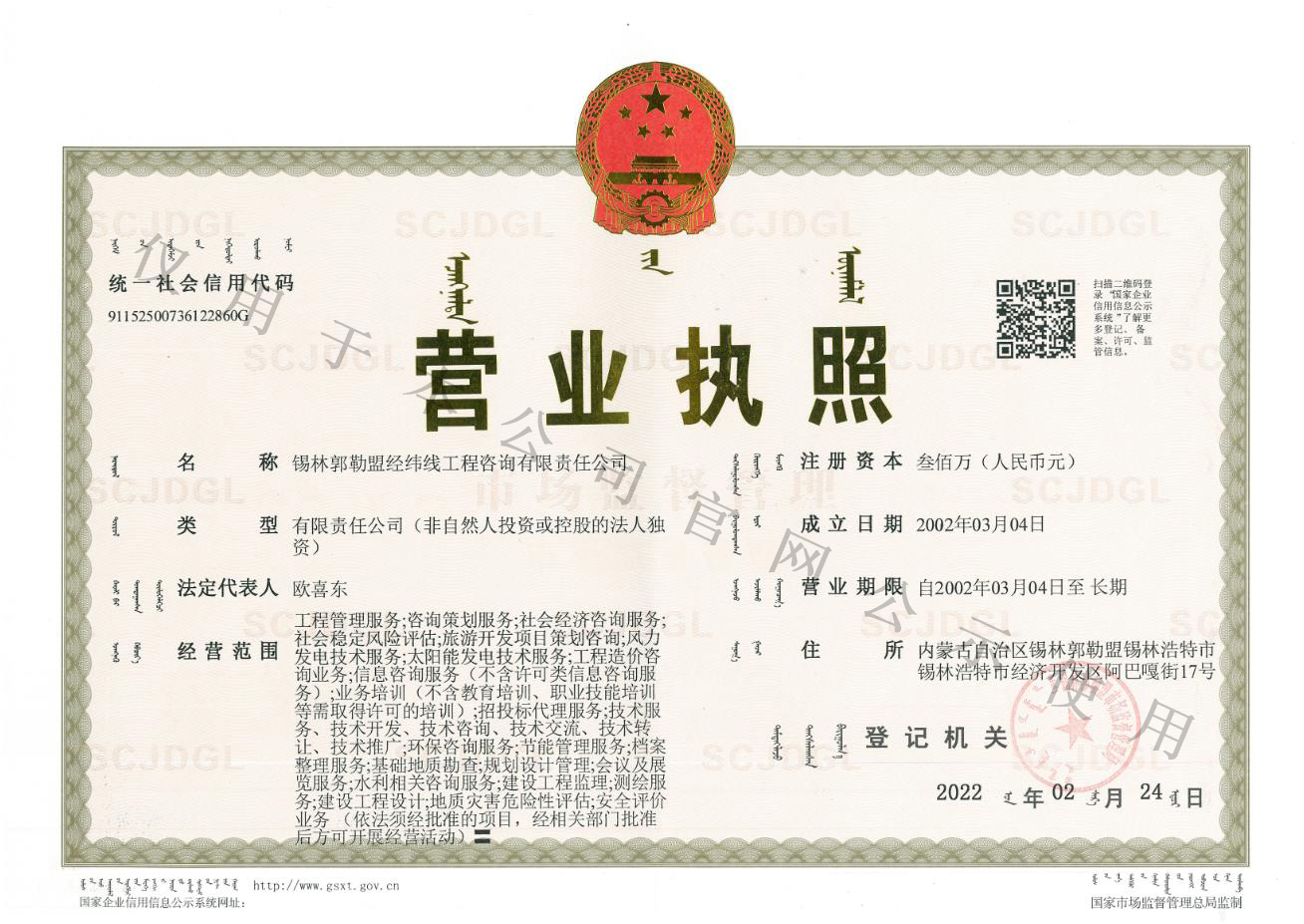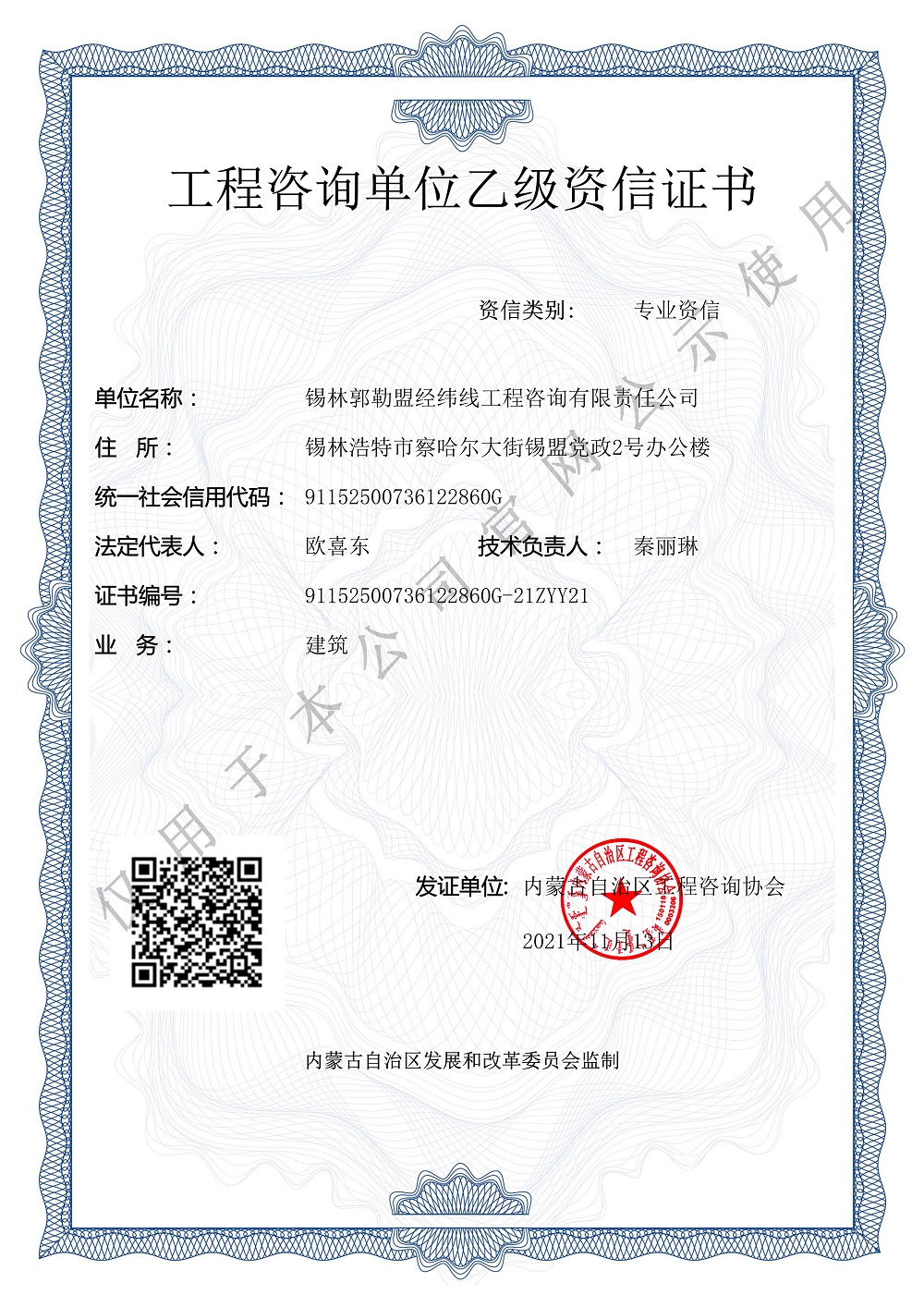 錫林郭勒盟經(jīng)緯線工程咨詢有限責(zé)任公司成立于2002年03月04日,注冊(cè)資本300萬元,原隸屬于錫林郭勒盟發(fā)展和改革委員會(huì)出資的國有獨(dú)資企業(yè),于2021年7月正式劃轉(zhuǎn)至錫林郭勒盟城鄉(xiāng)投資集團(tuán)。公司具備工程咨詢乙級(jí)資信,為內(nèi)蒙古自治區(qū)工程協(xié)會(huì)、內(nèi)蒙古招標(biāo)采購協(xié)會(huì)常務(wù)理事單位。