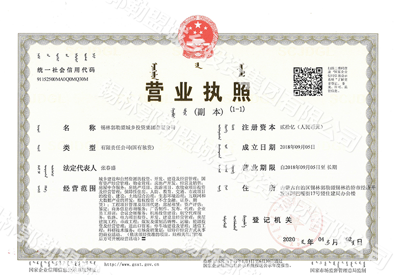 錫林郭勒盟城鄉(xiāng)投資集團有限公司營業(yè)執(zhí)照